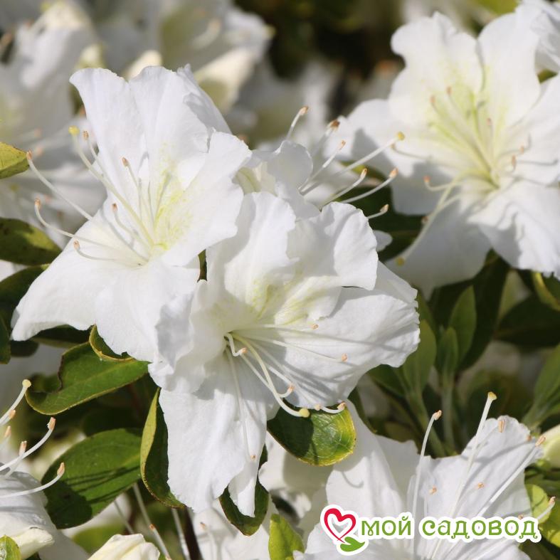 Азалия японская Ольга Ниблетт — редкий сорт азалии. Куст компактный, красивый, пышноцветущий. Белые цветы с желто-зеленой серединкой густо покрывают все растение. Рекомендуется для домашних садов и альпинариев. На зиму требует укрытия.